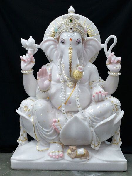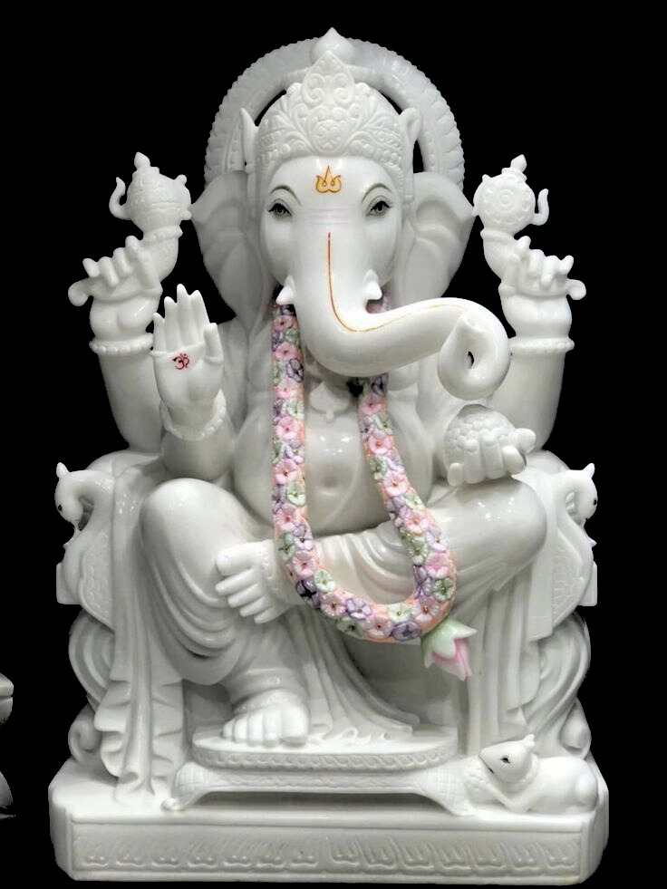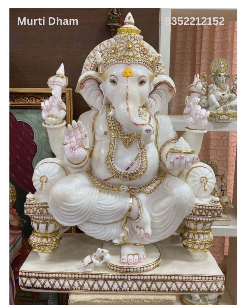 You can find Ganesha idols in various shapes, sizes, designs, colors, materials, and styles. Following in the footsteps of modernity, many designs include the palm-studded Ganesha of Lord Ganesh, Shah Ganesh, Musician Ganesh, Throne Ganesh, Om Ganesh, and Vastu Ganesh. These marble Ganesh statues are made of white marble.